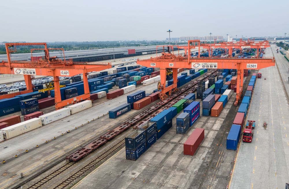 繁忙的成都国际铁路港中,汽笛接续千年前的驼铃声,亚欧大陆桥上的“钢铁驼队”中欧班列,用高效率连接着成都与世界。