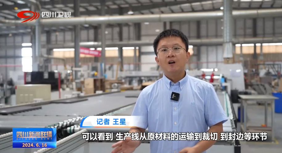 记者 王星:这里是位于成都市郫都区德贝实业的生产车间,可以看到,生产线从原材料的运输到裁切、到封边等环节,基本实现了全流程的自动化,这样一条年产能1.5万套的定制板材生产线,仅需要10个人左右就可以完成。