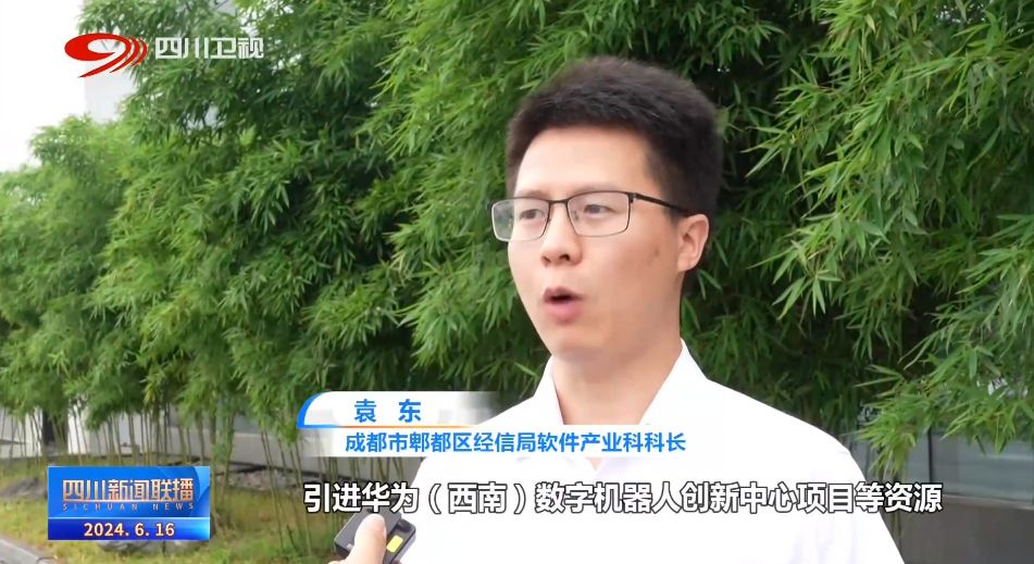 成都市郫都区经信局软件产业科科长 袁东:我们积极搭建“智改数转”赋能平台,引进华为(西南)数字机器人创新中心项目等资源,就地就近面向我们的企业提供“小快轻准”的智改数转服务方案,组织本地19家企业开展先行先试,给予政策资金支持。