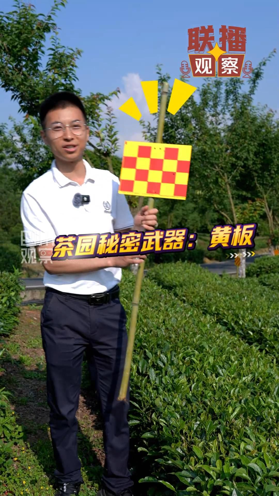 看见茶园里这一个个黄色的显眼包了吗?它们,可是茶农们的“守护神”,默默守护着每一片茶叶。色板诱杀,利用的是害虫的趋光性,通过田间悬挂矗立的这一块块挂色板,对茶园常见的粉虱、蓟马、叶蝉这类害虫进行诱杀。翠绿的茶园本就很好看,再加上小黄板点缀其间,不说杀虫,单说视觉效果,也真真是极好的。