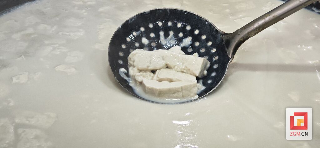 与他们同时进店的,还有两位帮工。他们于凌晨4点半就开启炉灶,为的是第一批食客在6点一进店,就能吃到鲜爽嫩白的浑浆豆花。