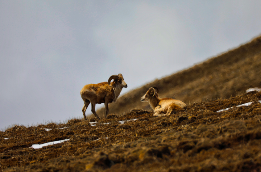 西藏盘羊在山脊处休憩互动(西华师范大学 冯彬摄)