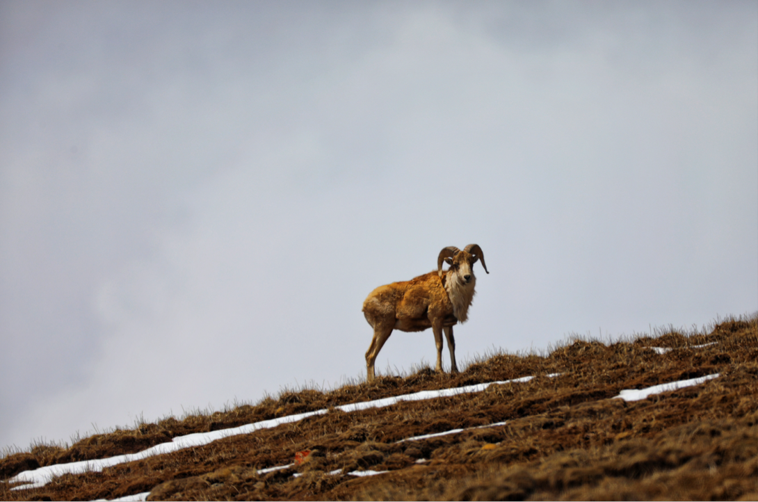 调查团队介绍:据记载,甘孜州石渠县是四川省西藏盘羊的仅有分布区,种群数量甚至不足100只。这次野外调查,记录到的西藏盘羊成群结队在草原上奔跑、觅食,一副怡然自得的景象。西藏盘羊头顶那盘曲的巨角彰显着它的骄傲气质,展现了这一物种的自然野性之美,团队成员能看到这群西藏盘羊在旷野间采食游憩,并把它们的活动场面记录下来,实属难得。