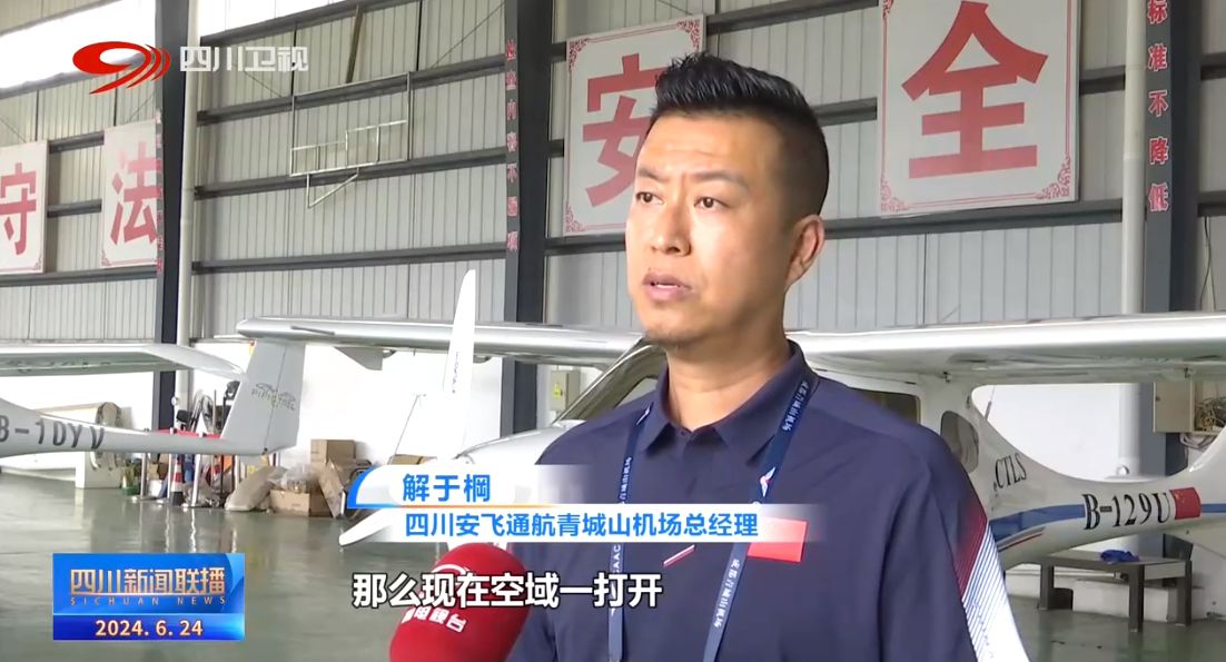 四川安飞通航青城山机场总经理 解于棡:(最早)因为空域的原因限制了很多人的飞行梦,那么现在空域一打开,尤其是低空(空域)打开,老百姓从最早觉得飞行遥不可及,(到)越来越多人来投身飞行这个行业,他来了解飞行、学习飞行,这一块儿我觉得影响是非常大的。