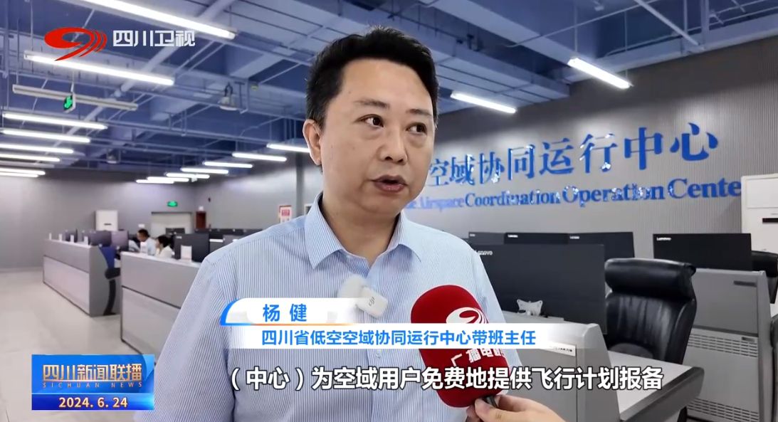 四川省低空空域协同运行中心带班主任 杨健:(中心)为空域用户免费提供飞行计划报备、航空情报、空中交通咨询服务和告警服务,并且配合相关部门进行违规违法的飞行活动的查处。