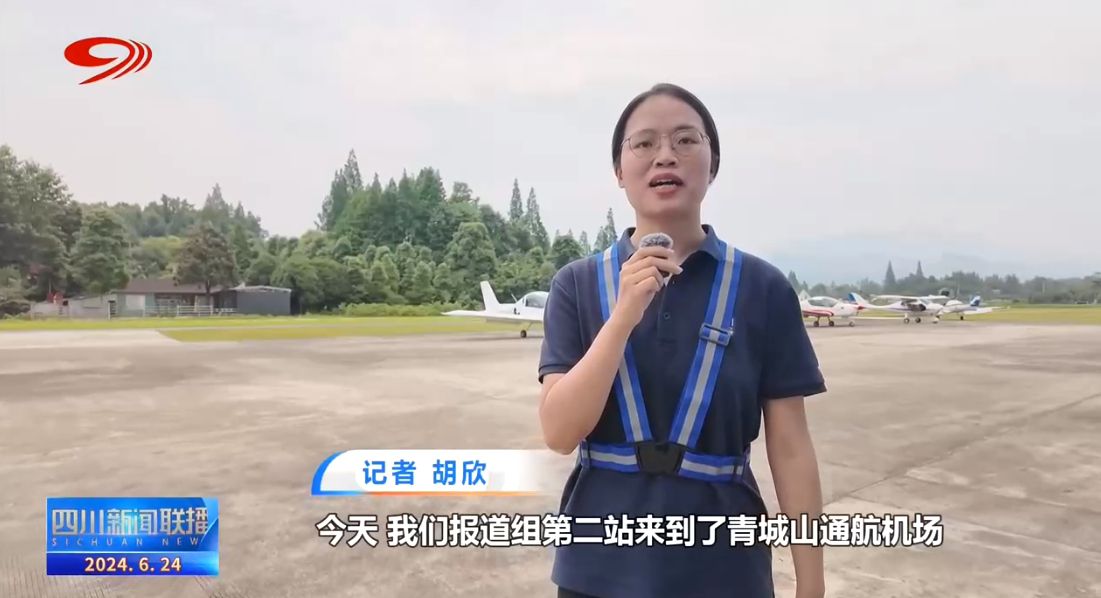 记者 胡欣:今天,我们报道组第二站来到了青城山通航机场,我们看到,在我身后的机坪停放着数架固定翼飞机和直升机。不远处的跑道上,飞机正在滑行,旁边还有跳伞、直升机观光等多个项目,游客们可以在这里找到自己最心仪的低空游览方式。