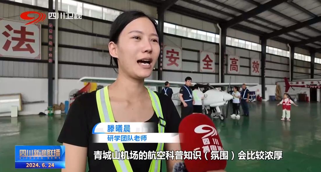 研学团队老师 滕曦晨:青城山机场航空科普知识(氛围)会比较浓厚,孩子们就可以看到不同种类的飞机,最重要的(是)还会有飞行体验,对孩子们来说,既有知识的收获又有实际的体验感受。