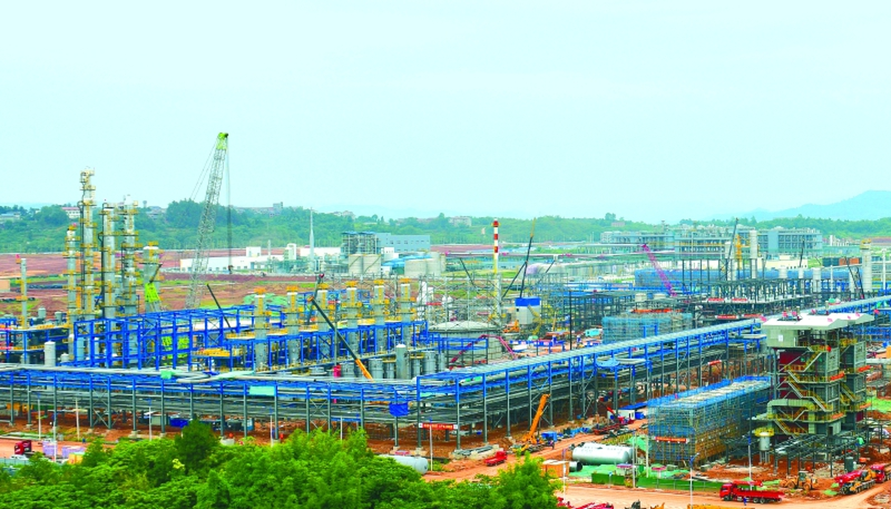 位于南充经开区的四川永盈新材料有限公司年产80万吨功能性新材料一体化产业链项目一期工程施工现场