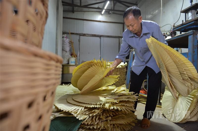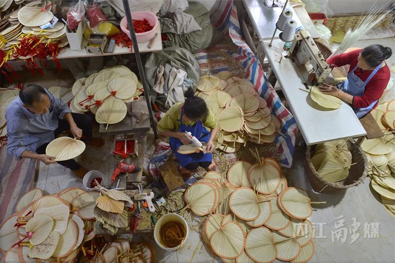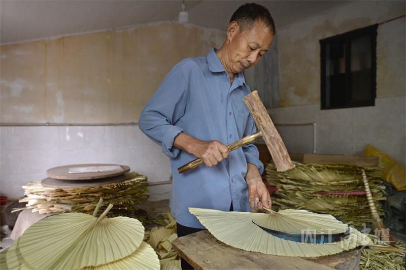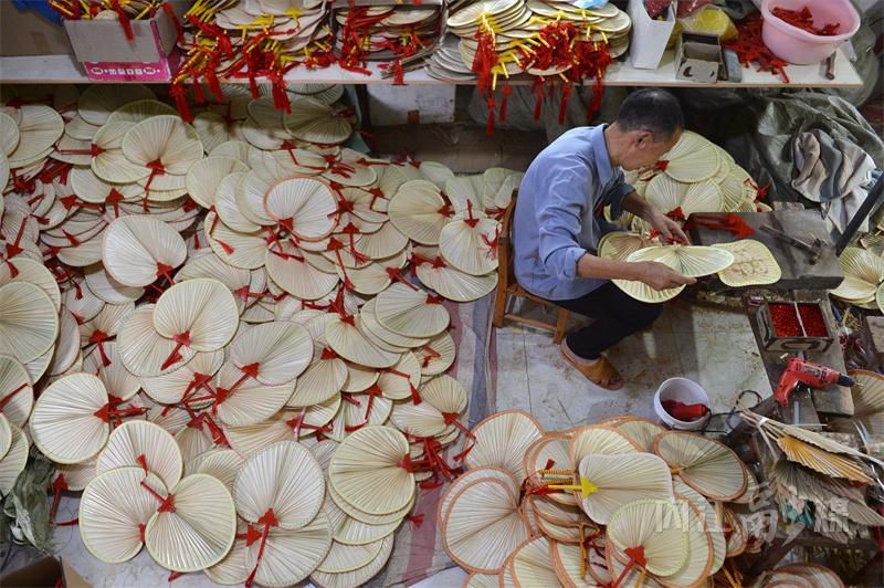 “这一把成品烙画蒲扇从蒲葵收割到晾晒、烘干、清洗、烤压、裁剪、包边、装扇柄、烙画等要经过20多道工序。今年雨水好,产量也不错,边做边卖都供不应求……”6月27日,内江市东兴区杨家镇金银嘴村党总支书记王永征向“万千气象看四川·甜美内江行”采访团的记者介绍。