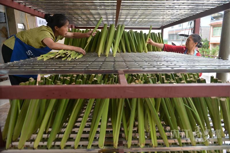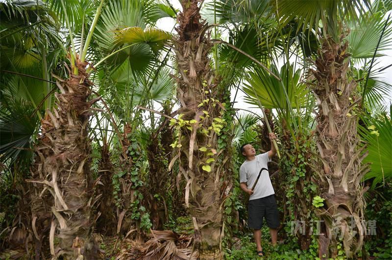 内江市东兴区杨家镇金银嘴村种植和晾晒的蒲葵