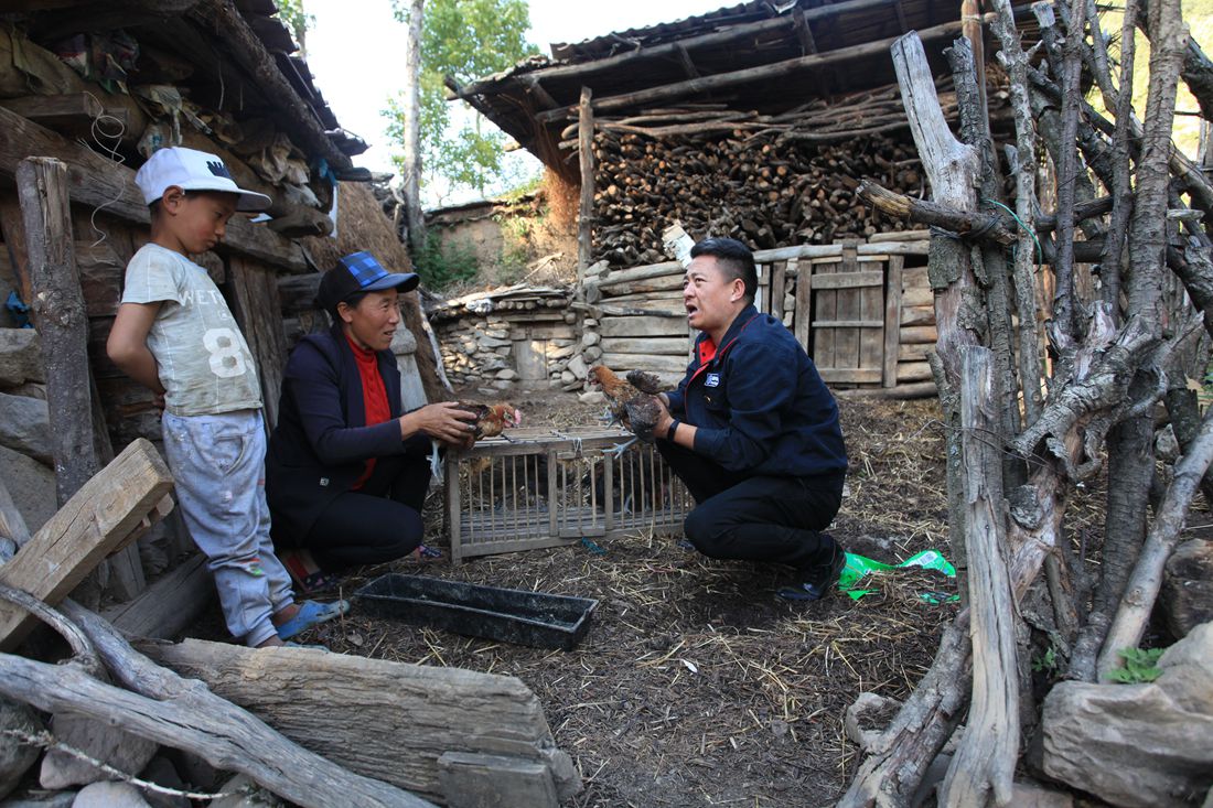 2018年5月16日,王小兵前往贫困户吉觉阿牛木家送鸡苗。