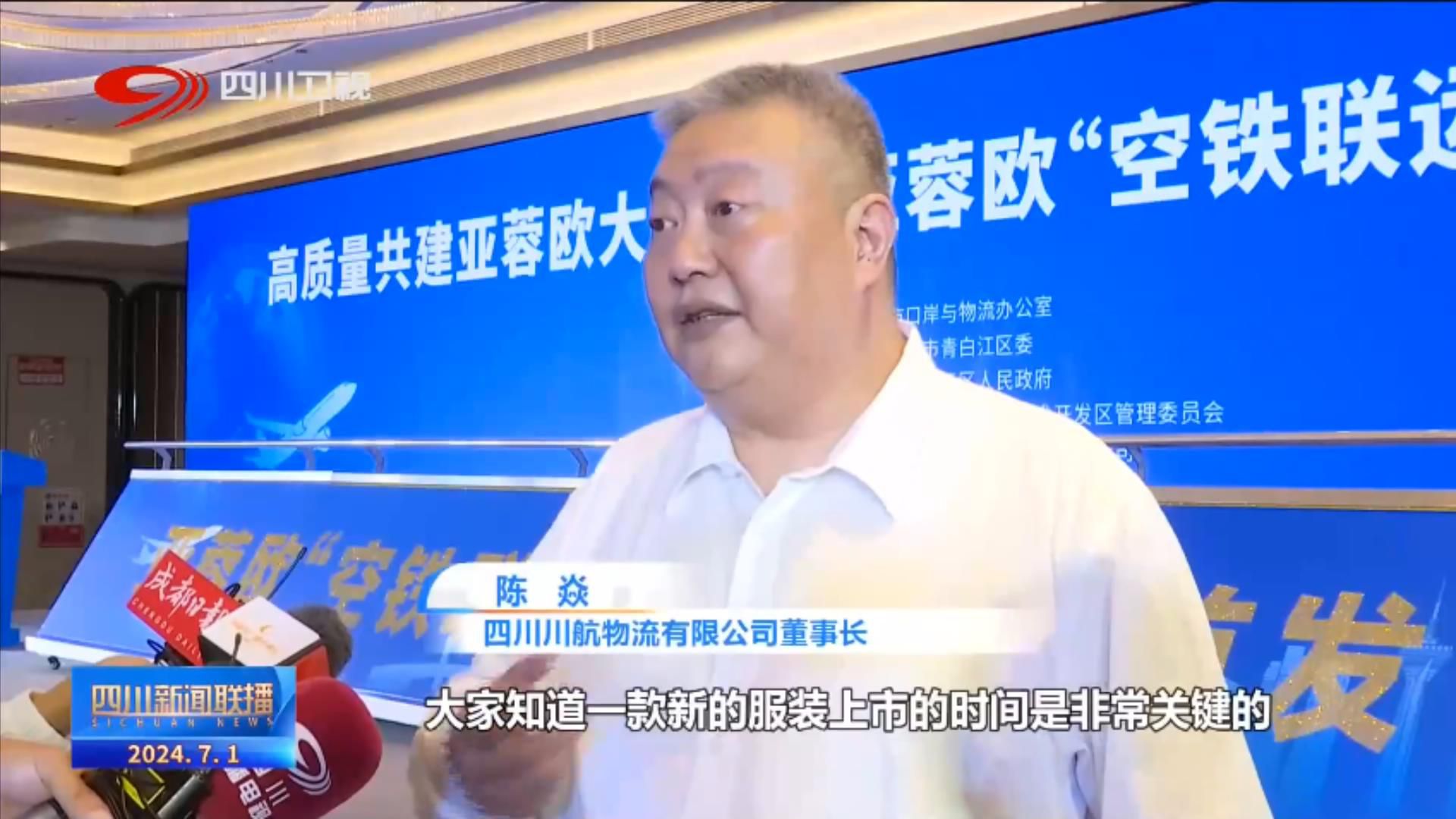 四川川航物流有限公司董事长 陈焱:大家知道一款新的服装上市的时间是非常关键的。空运的成本高,但是铁路运输的成本低,这两个融合整个成本就变得比较能够接受了。铁路上来讲的话,它是需要大概20多天的时间,但是利用了空铁联运的话,时间就缩短一半。