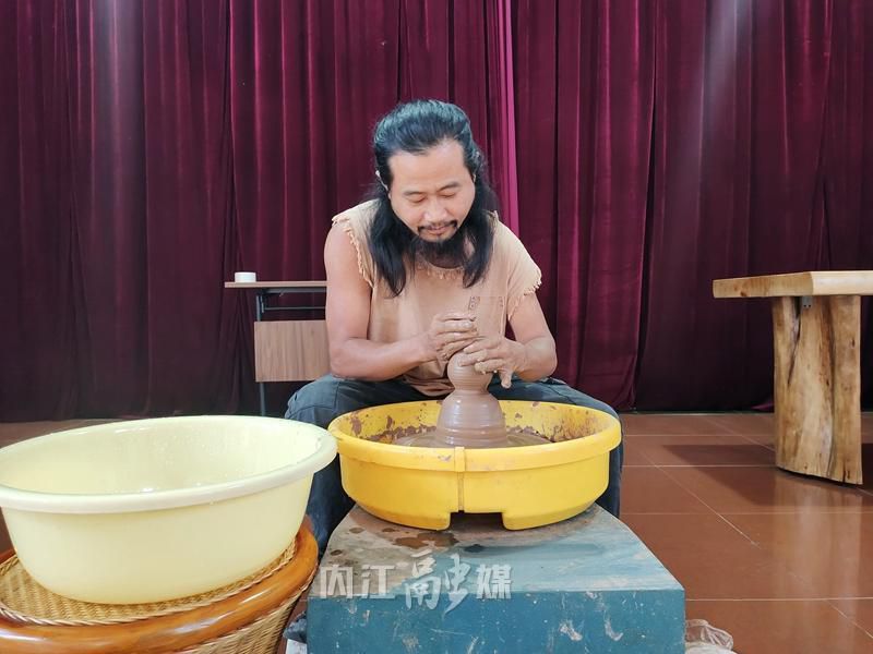 非遗传承人在隆昌市石碾镇渔箭社区非遗展示中心现场制作砂锅陶