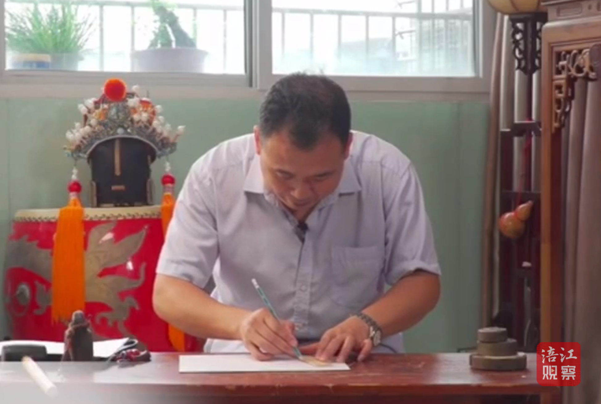 “盔头为什么这么容易烂?做盔头有什么讲究?”汪伟追着前辈们问个不停,还虚心向他们讨教盔头的制作技艺。