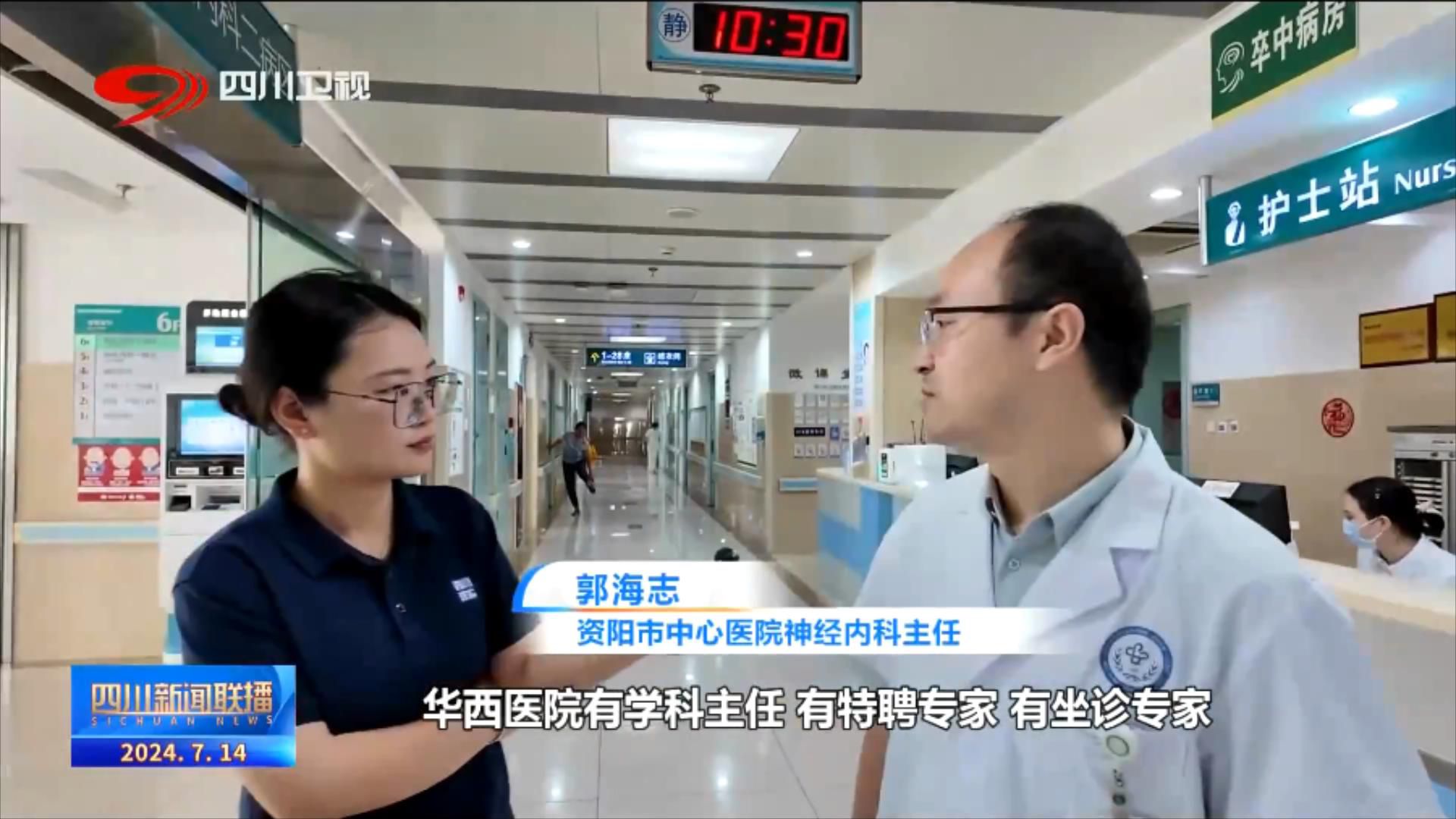 资阳市中心医院神经内科主任 郭海志:华西医院有学科主任、有特聘专家、有坐诊专家,他们会定期到我们院来坐门诊,病人能够在家门口就享受到华西医院的优质医疗资源和服务。