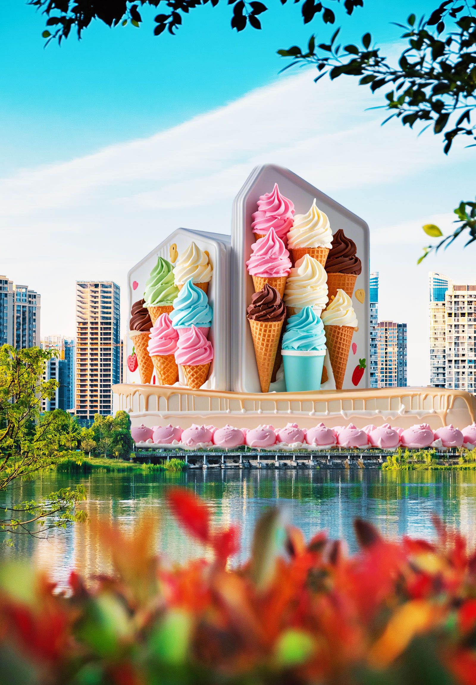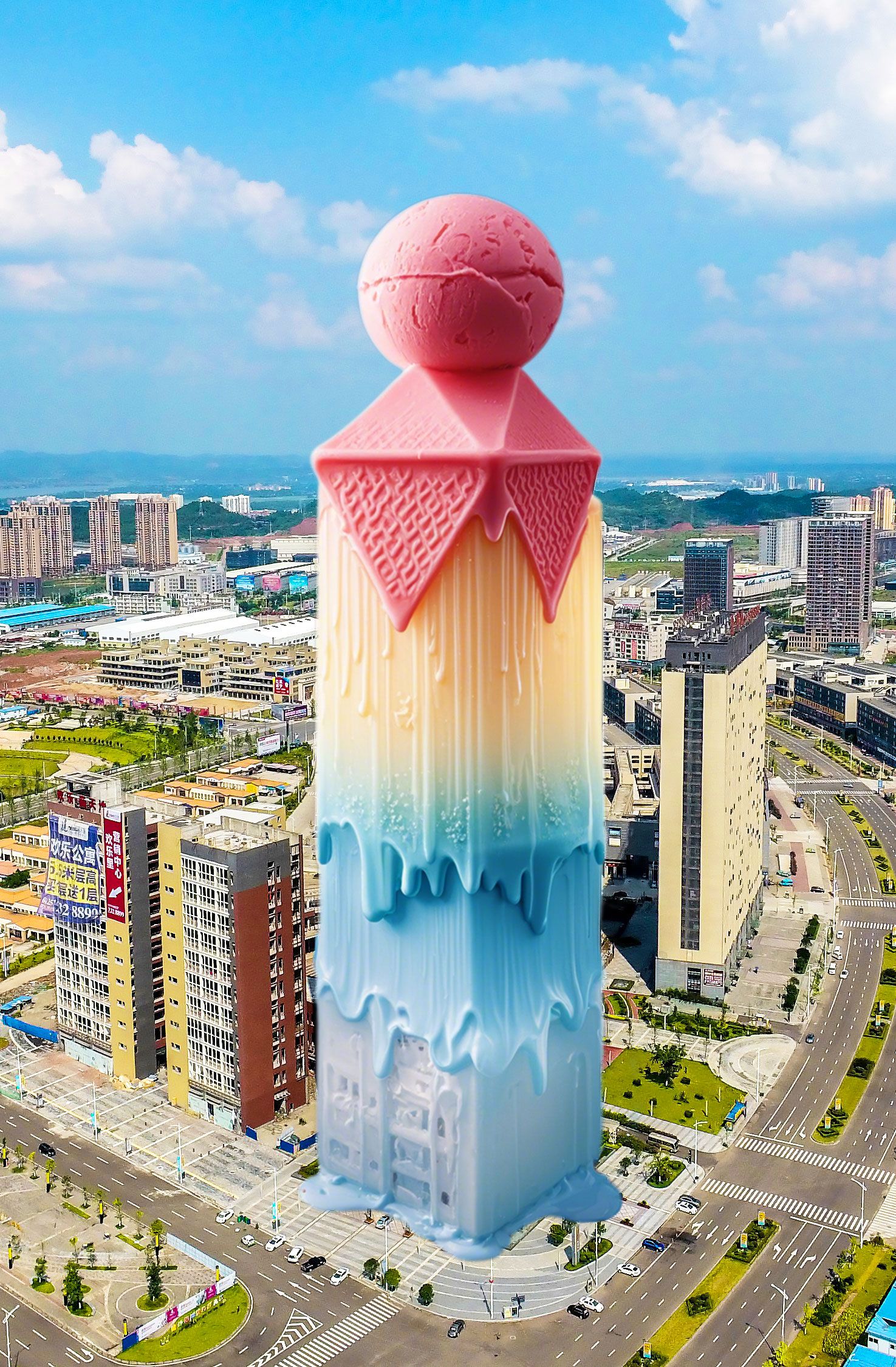 要说什么和夏天最般配 那肯定非冰淇淋莫属 轻咬一口,便是盛夏的冰甜 打开脑洞 如果遂宁的地标建筑 都化身巨巨巨大的冰淇淋 又会是怎样呢 今天,我们借助AI黑科技 在平行世界里 创造甜蜜清凉的遂宁 三伏天已开启,快来降降温吧马踏飞燕东旭阳光国际大酒店遂宁体育中心临仙阁龙凤古镇摩天轮蓬溪县鹫峰寺四川宋瓷博物馆OCG大楼邮政大厦卓筒井健坤城 这些遂宁地标建筑冰淇淋 你最想“吃”哪一个? 你还有哪些和城市夏日 有关的创意脑洞? 欢迎在评论区留言讨论 林敏/统筹 白莲/制作 图片摄影:刘昌松、吴奉家、岳冰松、林敏等