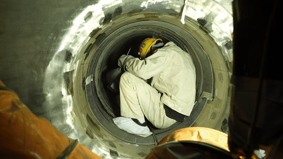 作为焊工,他经常要爬进