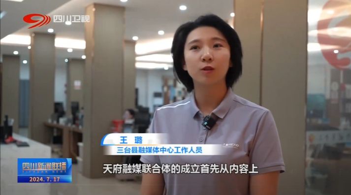 三台县融媒体中心工作人员 王璐:天府融媒联合体的成立首先从内容上为我们提供了丰富的稿源,在技术上为县融的发展提供了前沿性技术支撑,借助天府融媒联合体可以更好地宣传、推广三台。