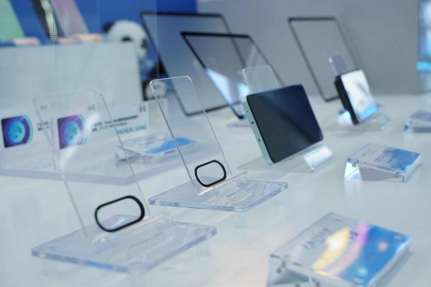 在展品台上,一块卷成“圆柱体”的透明玻璃片吸引了记者目光,“这就是我们的‘王者熊猫’高铝盖板玻璃。”据工作人员介绍,这块看似柔软的玻璃实则‘硬气’十足,其强度是普通玻璃的十倍,搭载该玻璃的整机可做到从近两米的空中落下无划痕和损伤。