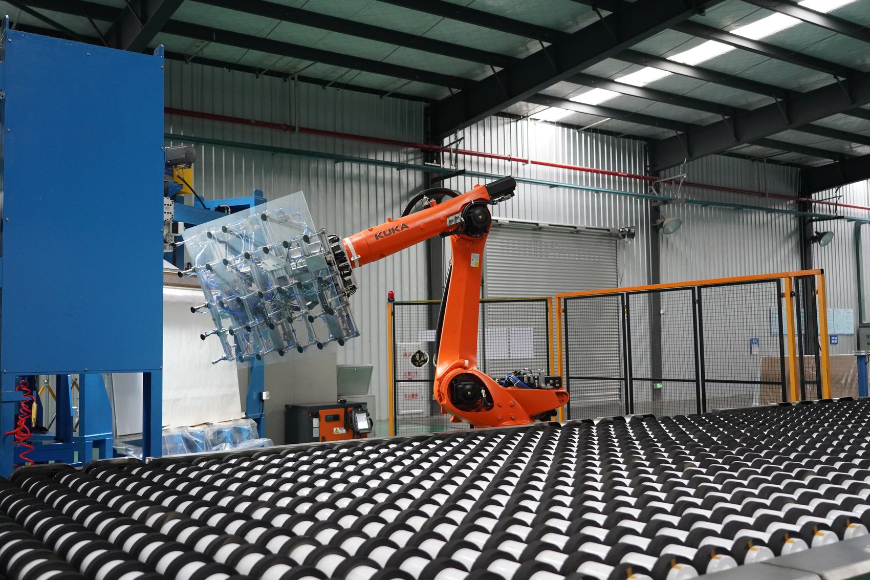 7月16日上午,川观新闻记者走进位于绵阳经开区新型功能材料产业园的四川虹科创新科技有限公司(以下简称“虹科创新”)成品车间,只见智能化抓片机器人正在将一片片薄如蝉翼的高铝盖板玻璃快速抓取后放至指定位置,待完成倒片覆膜工序后,包装并发往全国各地。