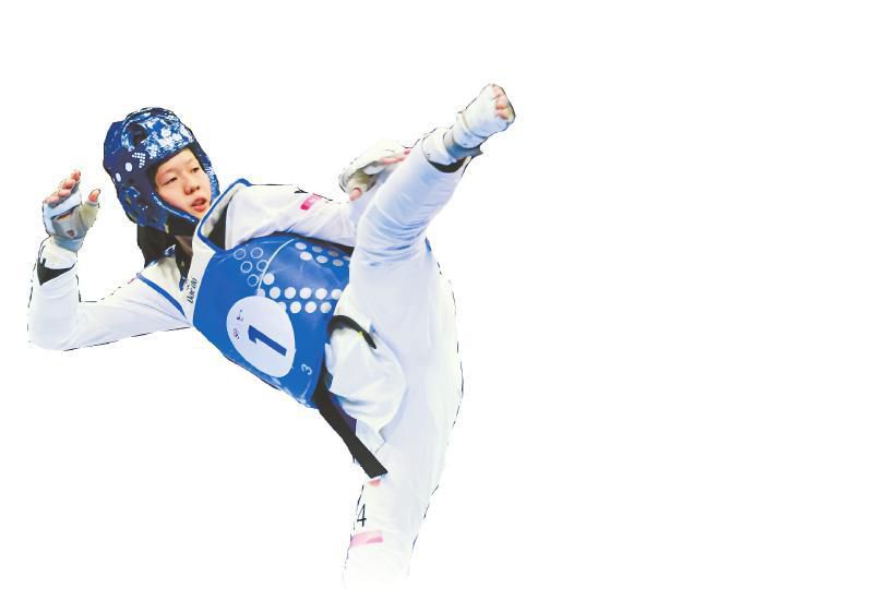中国队选手宋洁在2023年世界跆拳道团体世界杯锦标赛总决赛比赛中。 新华社发(还月亮 摄)
