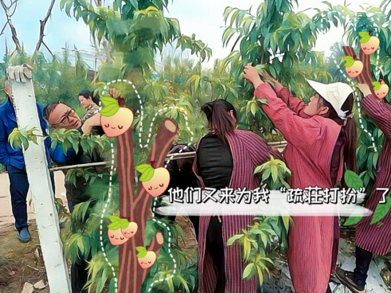 忙碌的身影穿梭在桃林间