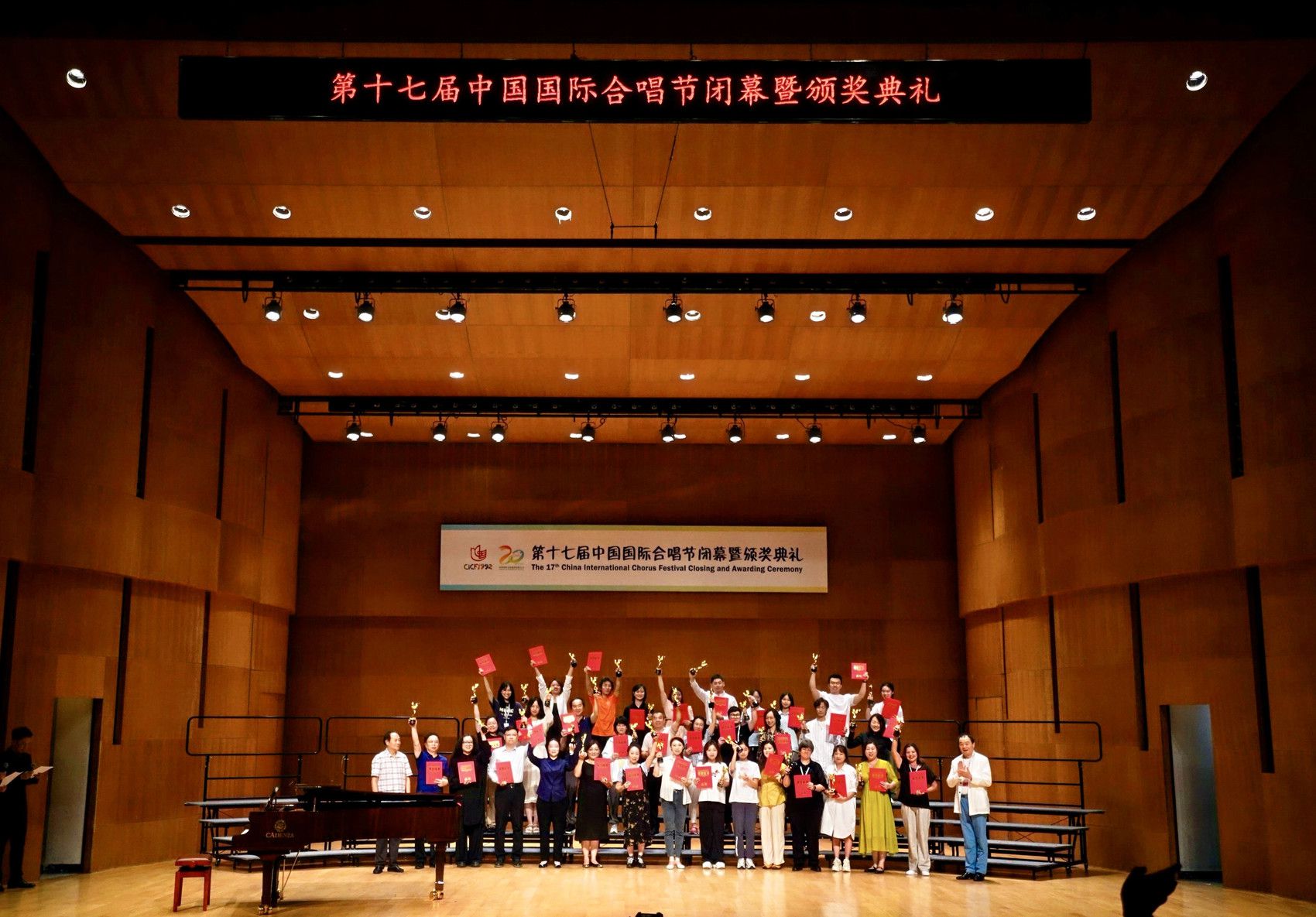 第十七届中国国际合唱节闭幕式现场,四川国际童声合唱团被评为民谣组一级团队