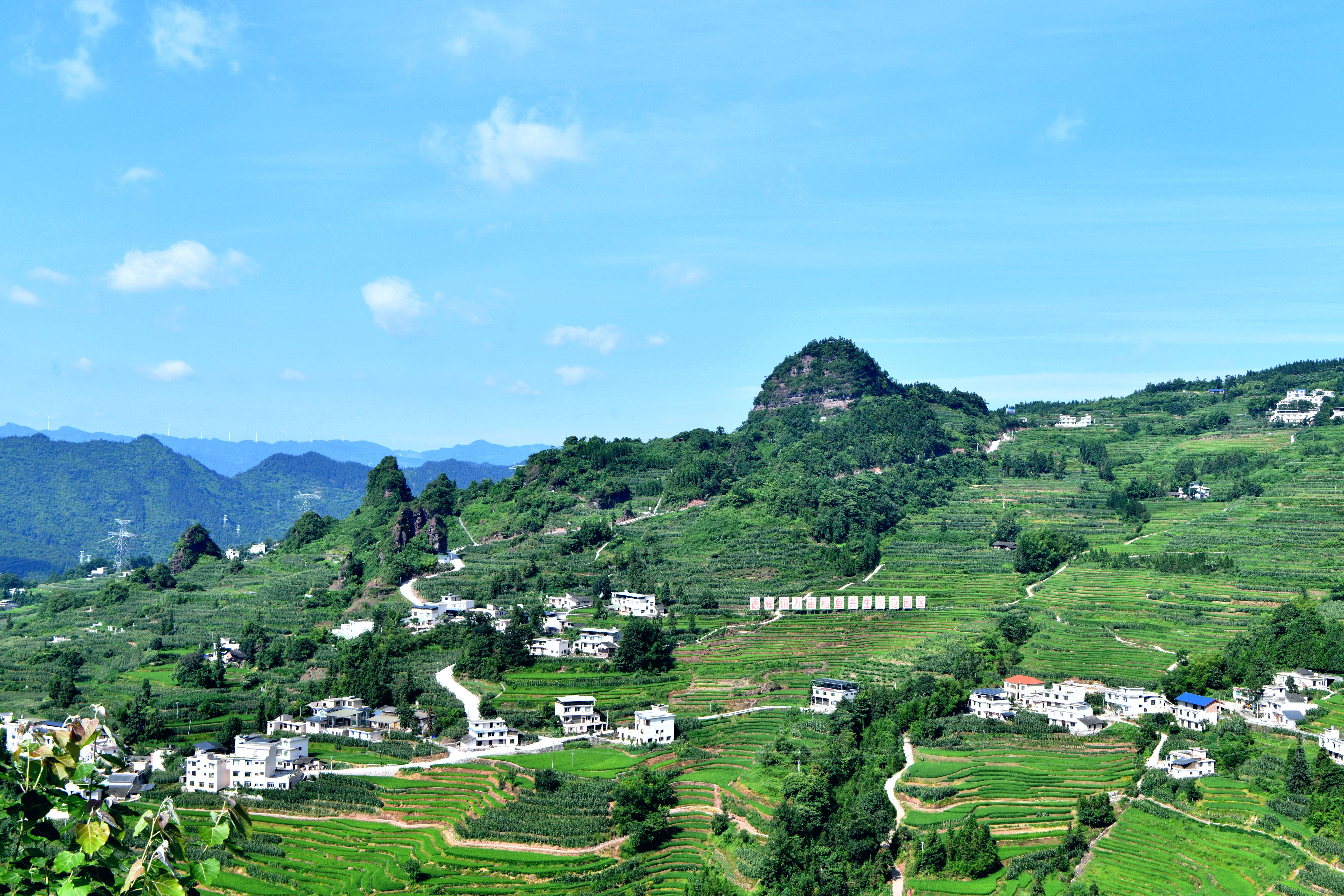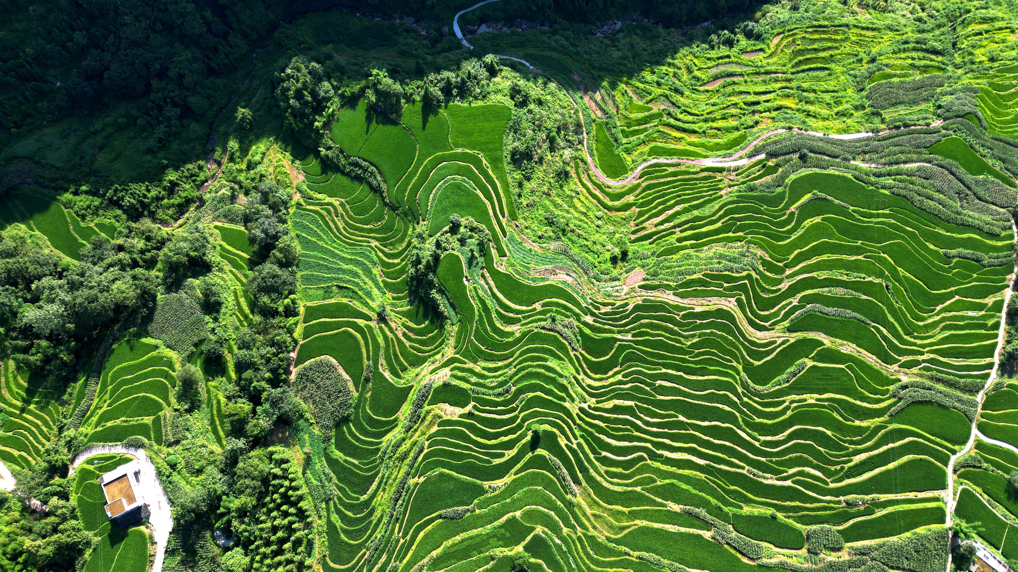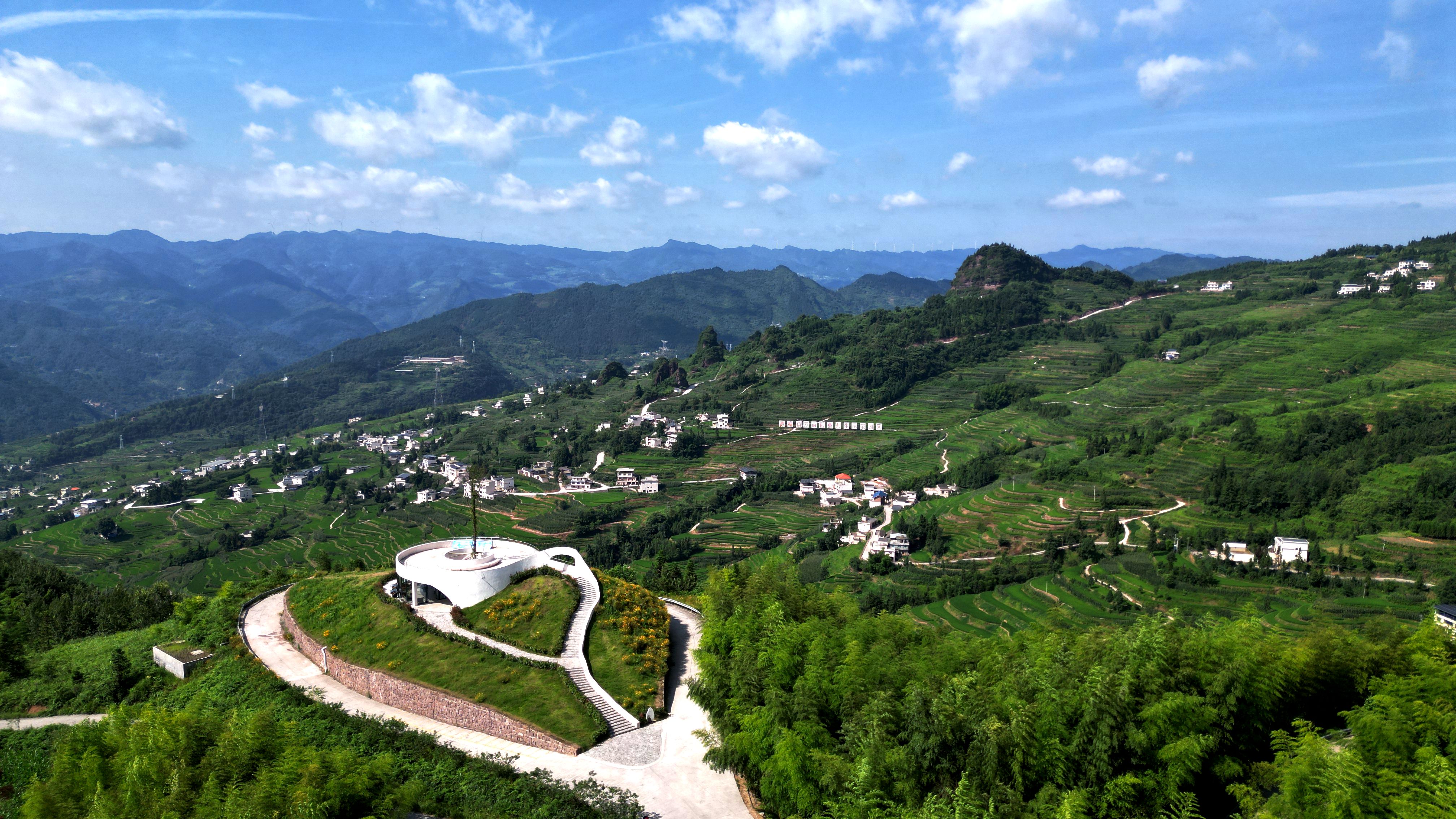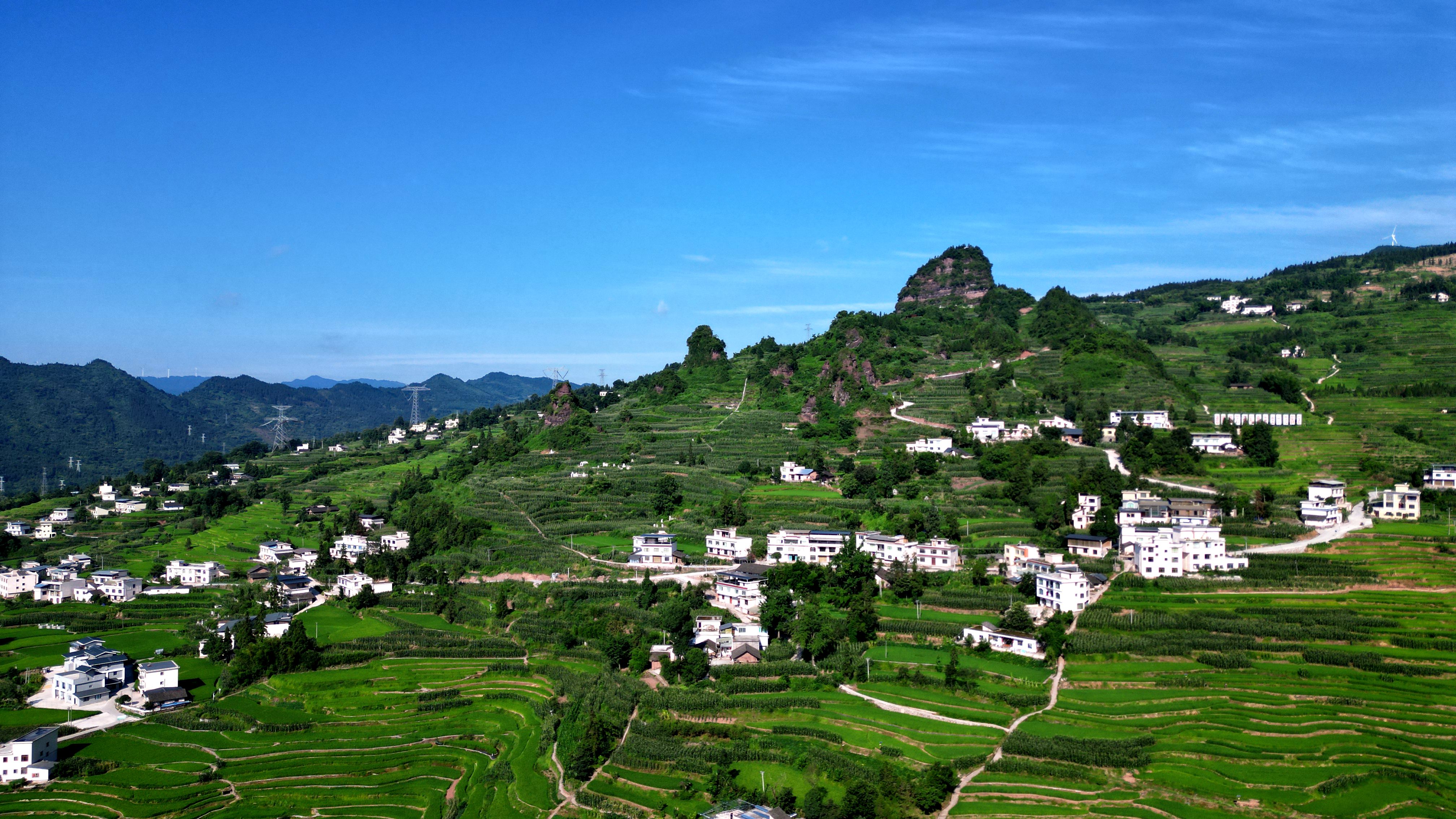 近日,在泸州市古蔺县德耀镇凤凰村万亩梯田,佳禾吐翠,长势正旺。一块块绿油油的梯田沿着山势延伸开来,和点缀其间的村庄构成了一幅美丽画卷。
