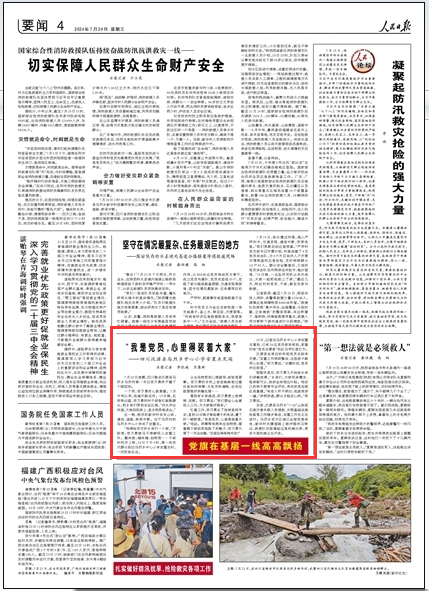 忙着工作,李万勇忘了给家里报平安,直到20日晚才接起妻子的电话,遭了好一顿数落。“我是党员,心里得装着大家。”他说。同事帮他捎来生活物资,看着脚下被泥浆泡胀了的鞋子,李万勇只要了一双运动鞋,“后面还得保持冲劲!”