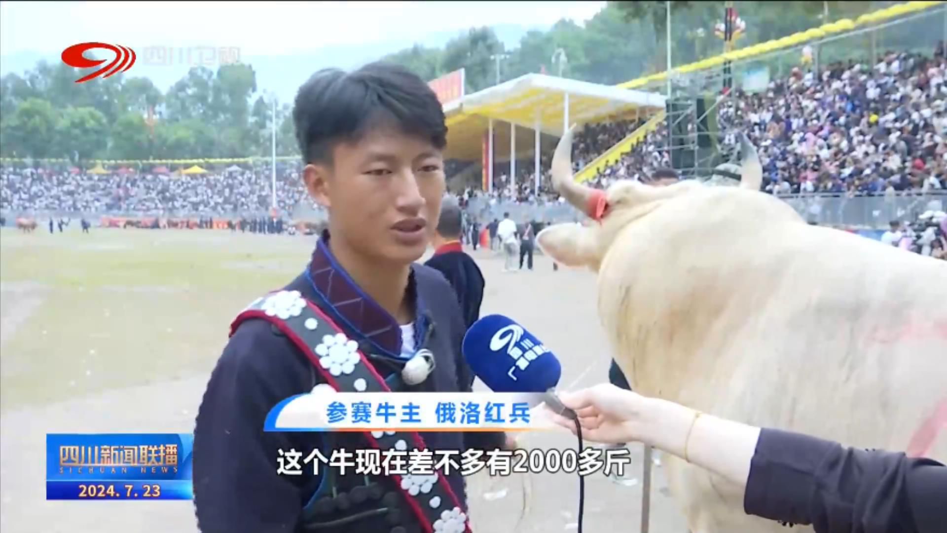 参赛牛主 俄洛红兵:这个牛现在差不多有2000多斤,不仅要把它喂饱,就是也要给它锻炼好,太壮了也不行,就是把它练得一身肌肉才行。