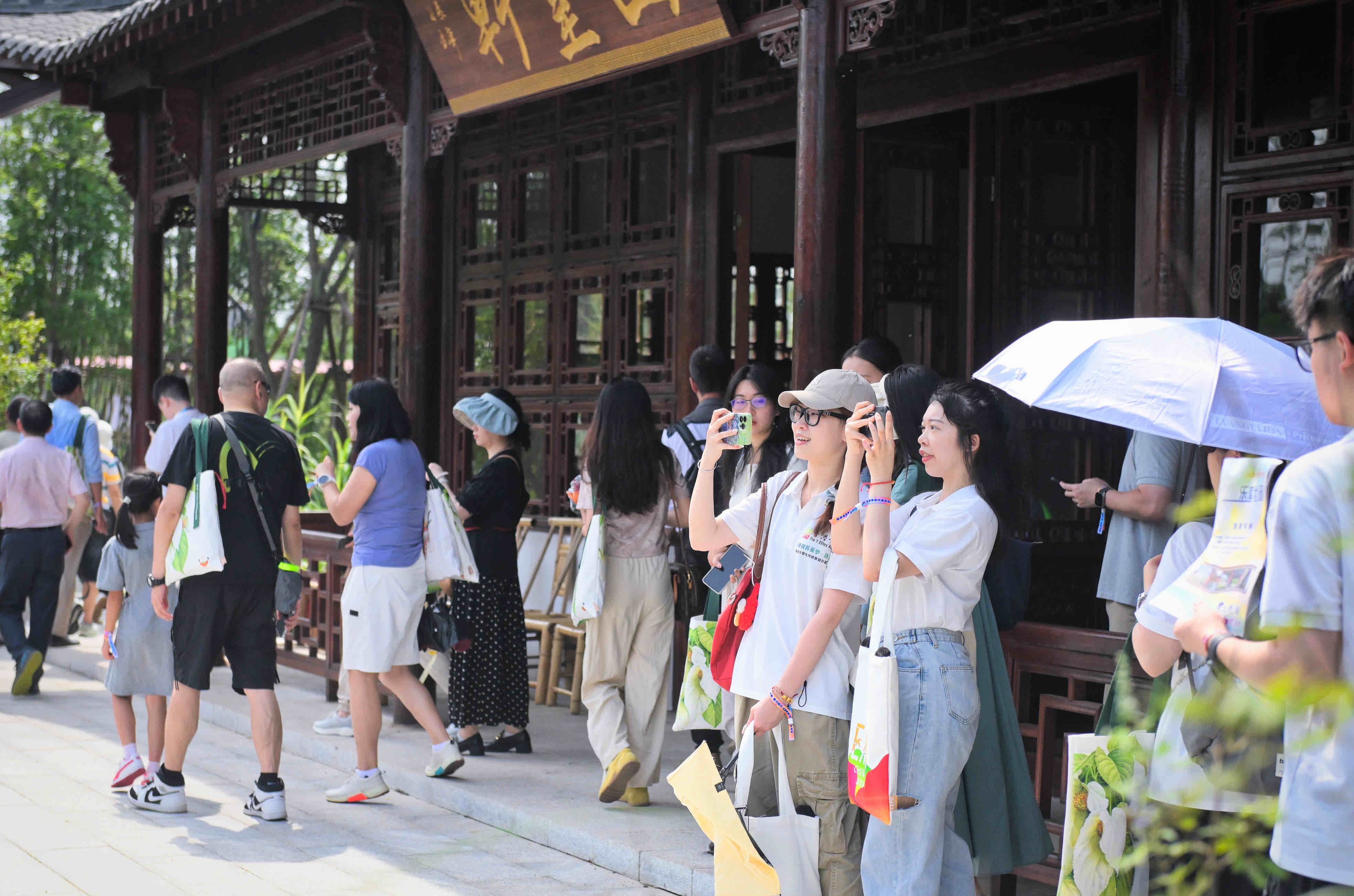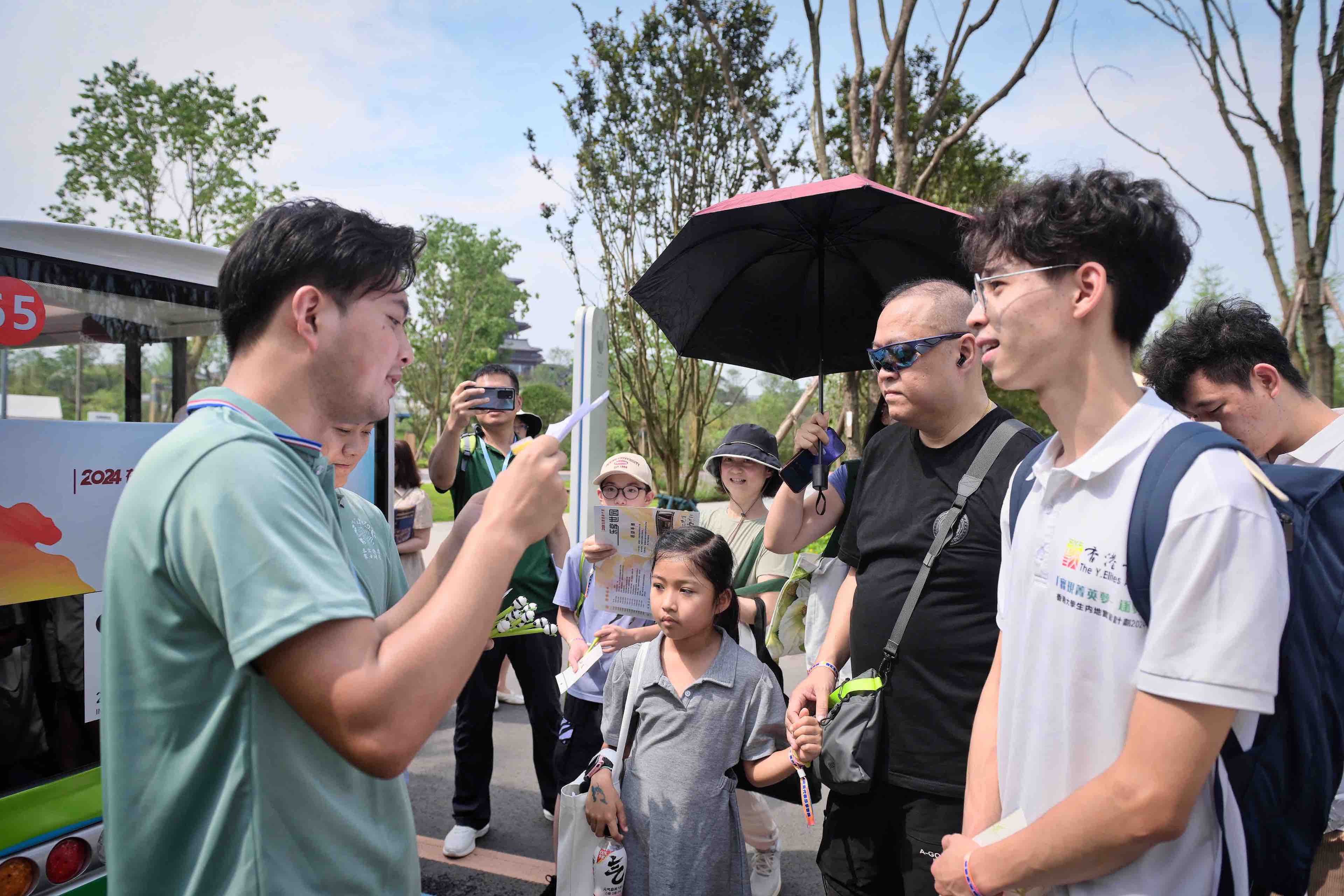 赏花看景、游戏互动、科技体验……启动仪式后,港澳代表乘车在园区内观赏天府眼摩天轮、天府人居展区、锦云楼等世园会标志性建筑。他们探访中华园艺展区,漫步于成都园、北京园、深圳园等展园,了解不同城市及地区的园艺魅力。此外,港澳代表还一同前往成都国际友谊馆,了解成都与112个城市缔结友好关系的成果展示,感受“各美其美、美美与共”的人文情怀。