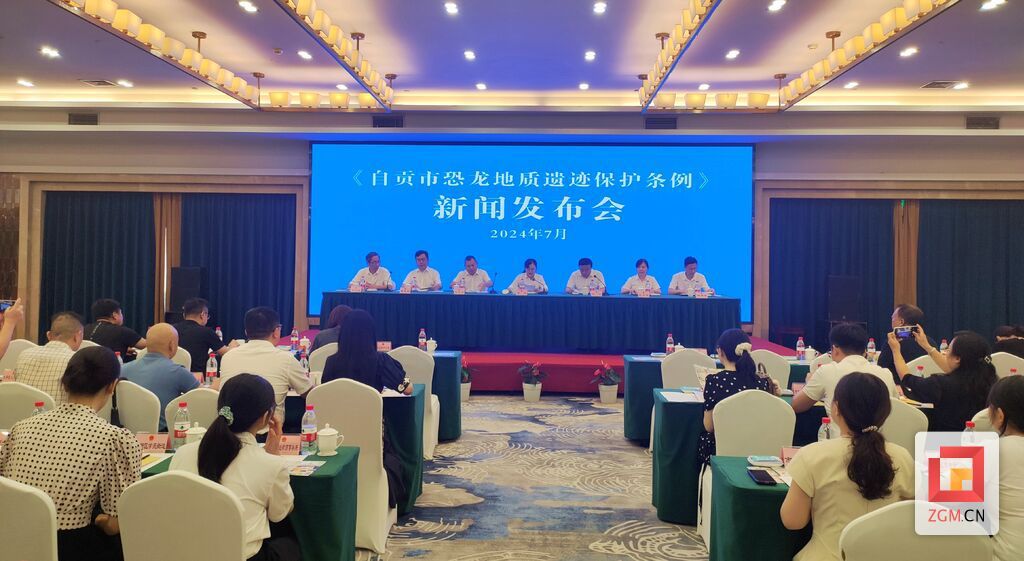 7月24日上午,自贡市人大常委会召开《自贡市恐龙地质遗迹保护条例》(以下简称《条例》)新闻发布会。该《条例》由四川省第十四届人民代表大会常务委员会第十二次会议批准,将于2024年8月1日起施行。