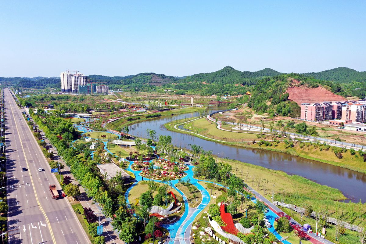 位于安居城区的凤凰栖公园,琼江从园中蜿蜒而过。安居区委宣传部供图