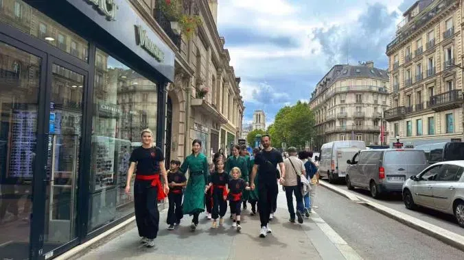 峨眉女团在巴黎艺术桥汇聚
