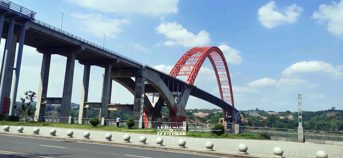 合江长江公路大桥主跨507米,为飞燕式钢管混凝土系杆拱桥,系目前同类桥型世界第一跨径。