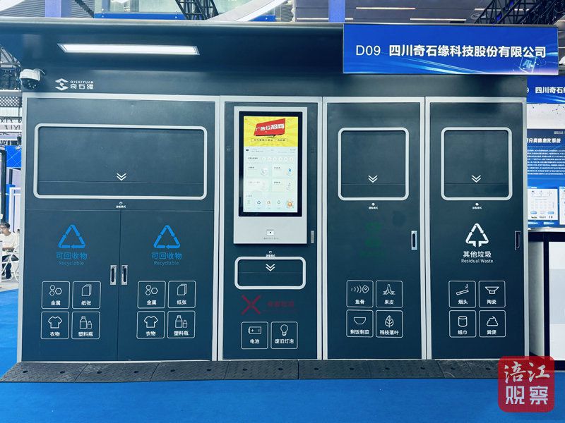 7月28日,记者在展馆内就见到这样一款智慧环卫垃圾分类硬件设施。从外面上看去,它和其他的垃圾分类站并无区别,依旧分为可回收物、有害垃圾、厨余垃圾、其他垃圾等几个投放口,但在中部的一个电子屏上,除了人脸识别、二维码等各式用户认证方式外,还多了一个小机器人的头像,而它正是AI赋能的体现。