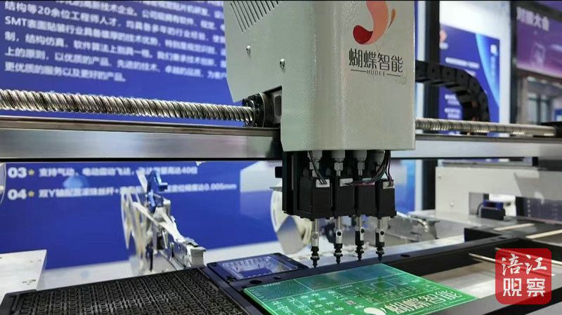 在四川蝴蝶智能装备有限公司的展位前,一款正在演示的精密贴片机吸引了不少人的目光。据了解,这款机器的贴装精度可达0.025mm,即便微小如砂砾,贴片机都能精确抓起并将其黏贴的严丝合缝。它的投用,实现了高效、精准的生产,大大提高了产品质量和生产效率。