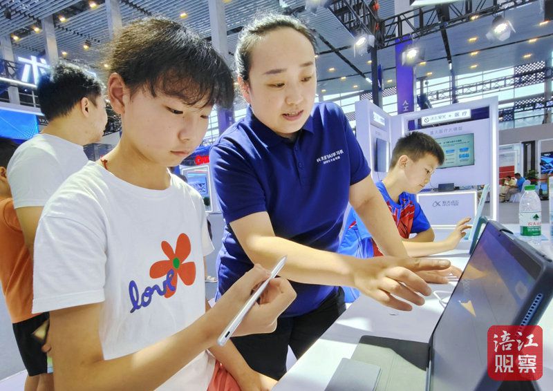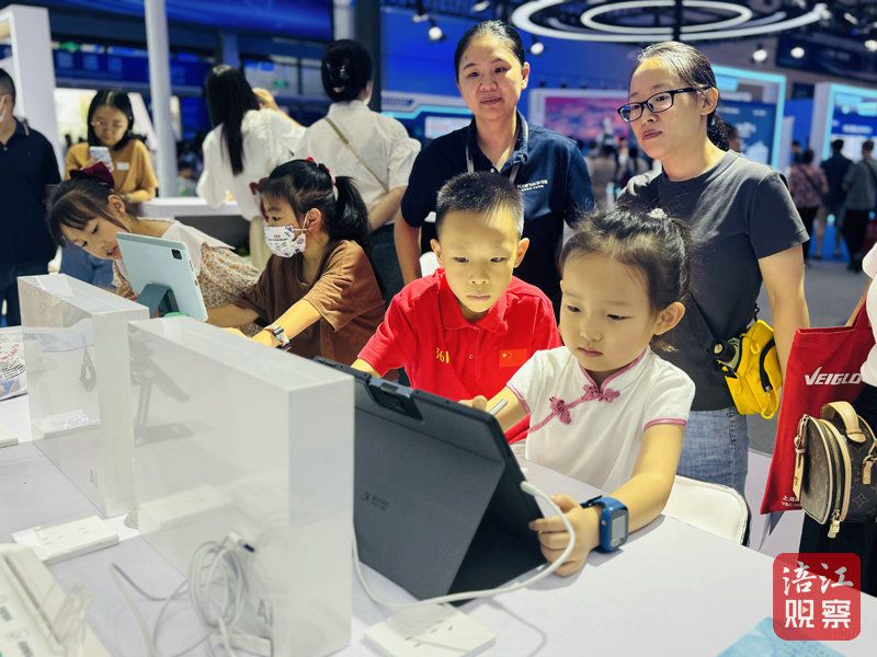 在科大讯飞展区内,各式各样的新“玩意儿”就吸引众多家长和孩子们前来体验人工智能的魅力,感受科技赋能教育的神奇。