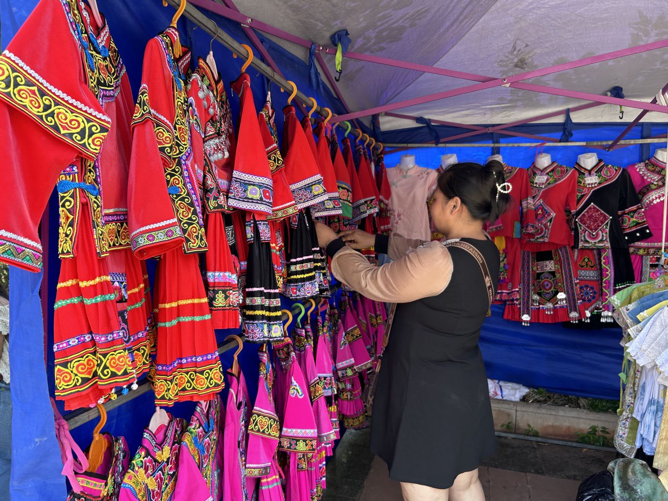 △ 游客选购俚颇彝绣服饰
