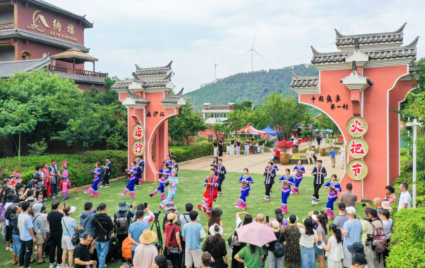 7月27日,随着火把节的到来,大批游客涌入迤沙拉村,感受节日的欢快与热闹。一场又一场节庆盛宴,让迤沙拉村多次火出了圈,也给群众带来了笑颜。