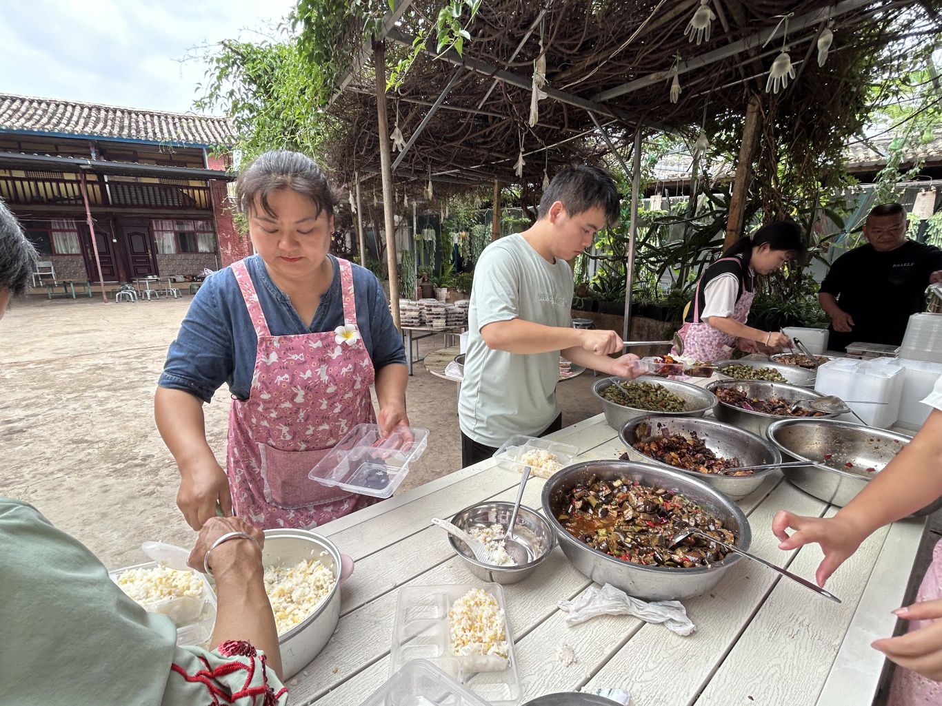 “今天客人非常多,中午就接待了20多桌,还有700多份盒饭,把亲戚朋友们都喊来才忙得过来。”在郑家姐妹农家乐院子里,老板郑自芹一边招呼客人一边收拾桌椅,忙得脚不沾地。
