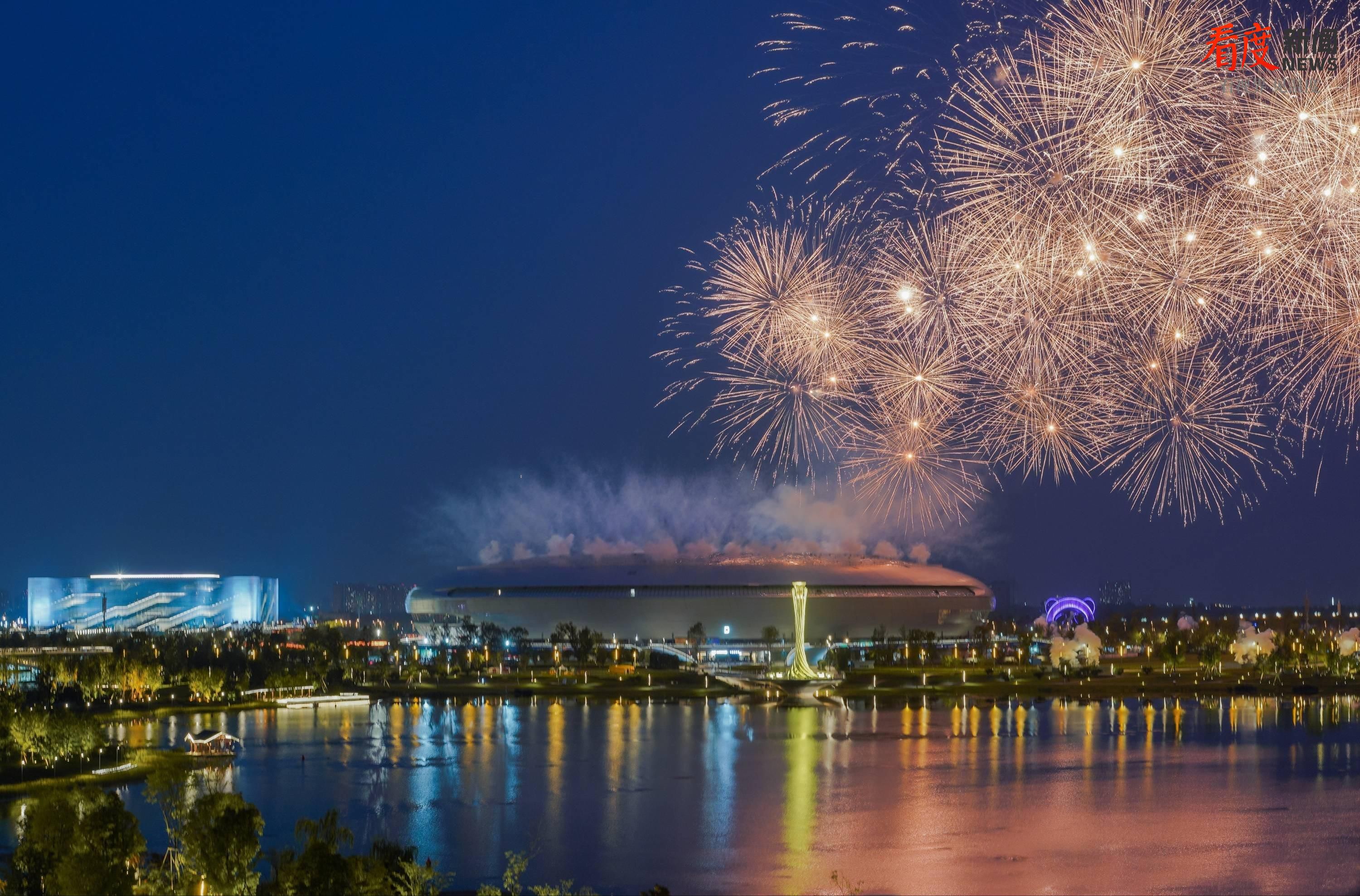 2023年7月28日成都大运会开幕当晚,东安湖体育公园烟火璀璨