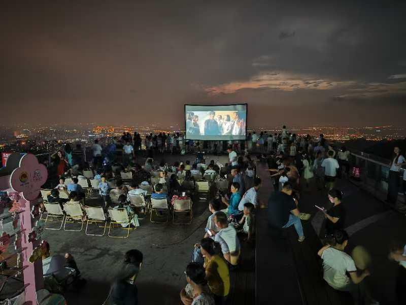 8月3日晚,第23届大众电影百花奖最佳故事片殊荣的影片《国歌》在龙泉驿城投·凤栖东山(龙泉山三号观景平台)放映。