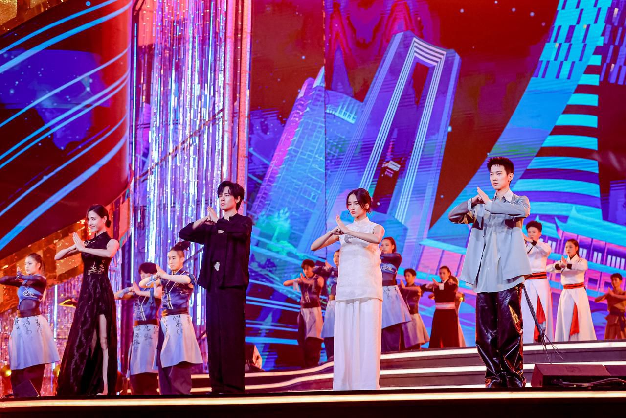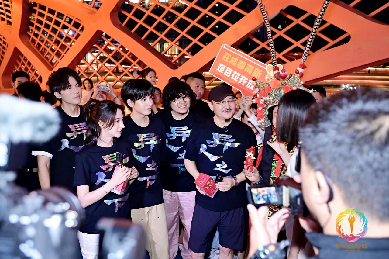 8月1日晚,电影工作者乌尔善、胡先煦、李宛妲、宋宁峰前往高新区交子大道交子之环,以双塔为背景与市民近距离互动,打卡城市地标,共享川剧变脸、茶艺表演。