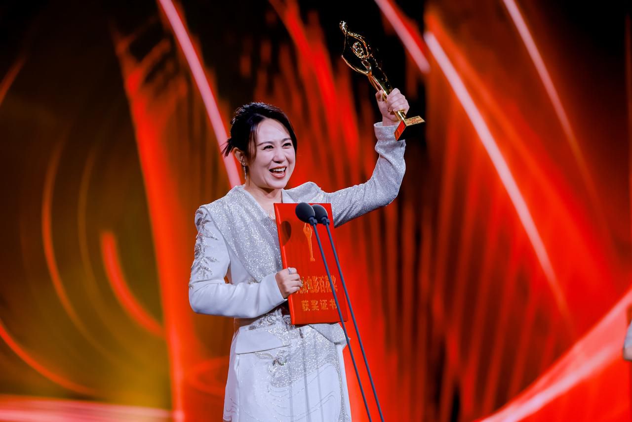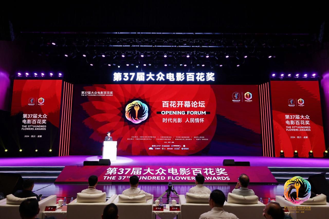 8月4日,在第37届大众电影百花奖颁奖典礼上,陆小雅、史彭元、陈菁菁讲述及AI短片《花开蓉城》。