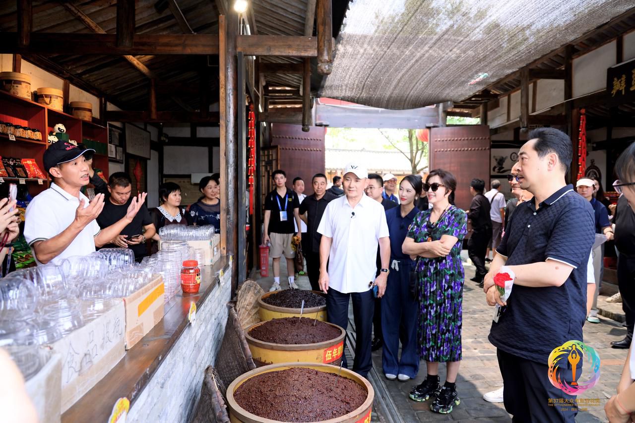 8月2日,参加第37届大众电影百花奖活动的电影表演艺术家刘晓庆、刘劲和卢奇一行,走进成都市郫都区战旗村。
