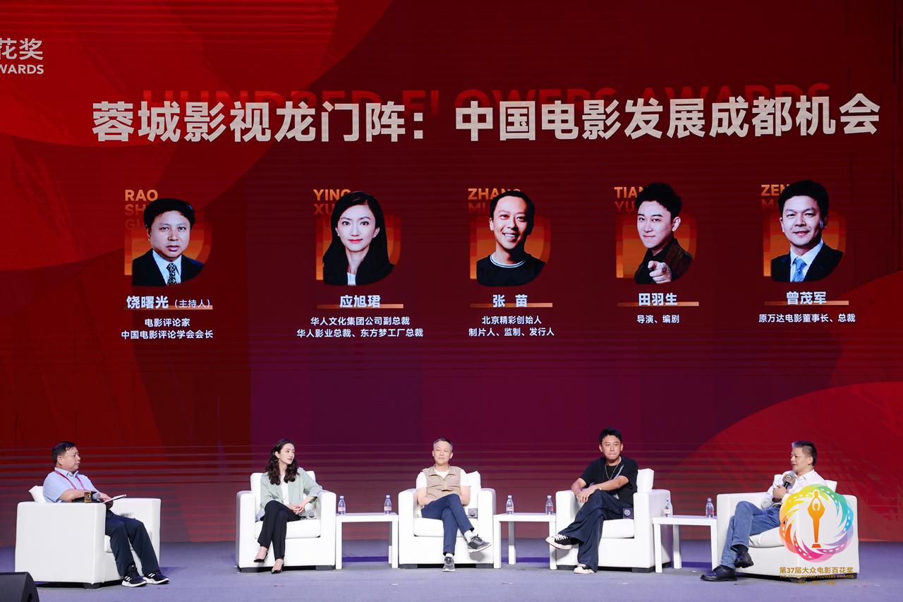 8月3日,第37届大众电影百花奖科幻论坛暨成都电影产业专场推介会上,电影理论家、中国电影评论学会会长饶曙光,华人文化集团公司副总裁、华人影业总裁、东方梦工厂总裁应旭珺等五位电影人畅谈“中国电影发展成都机会”。