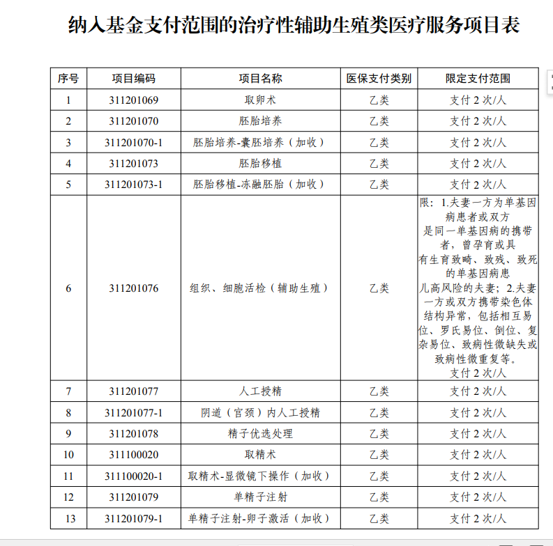 为进一步完善全省医保支持积极生育政策,更好满足人民群众的需求,四川省医疗保障局决定规范整合全省辅助生殖类医疗服务价格项目,并将部分治疗性辅助生殖类医疗服务项目纳入基本医疗保险基金支付范围。