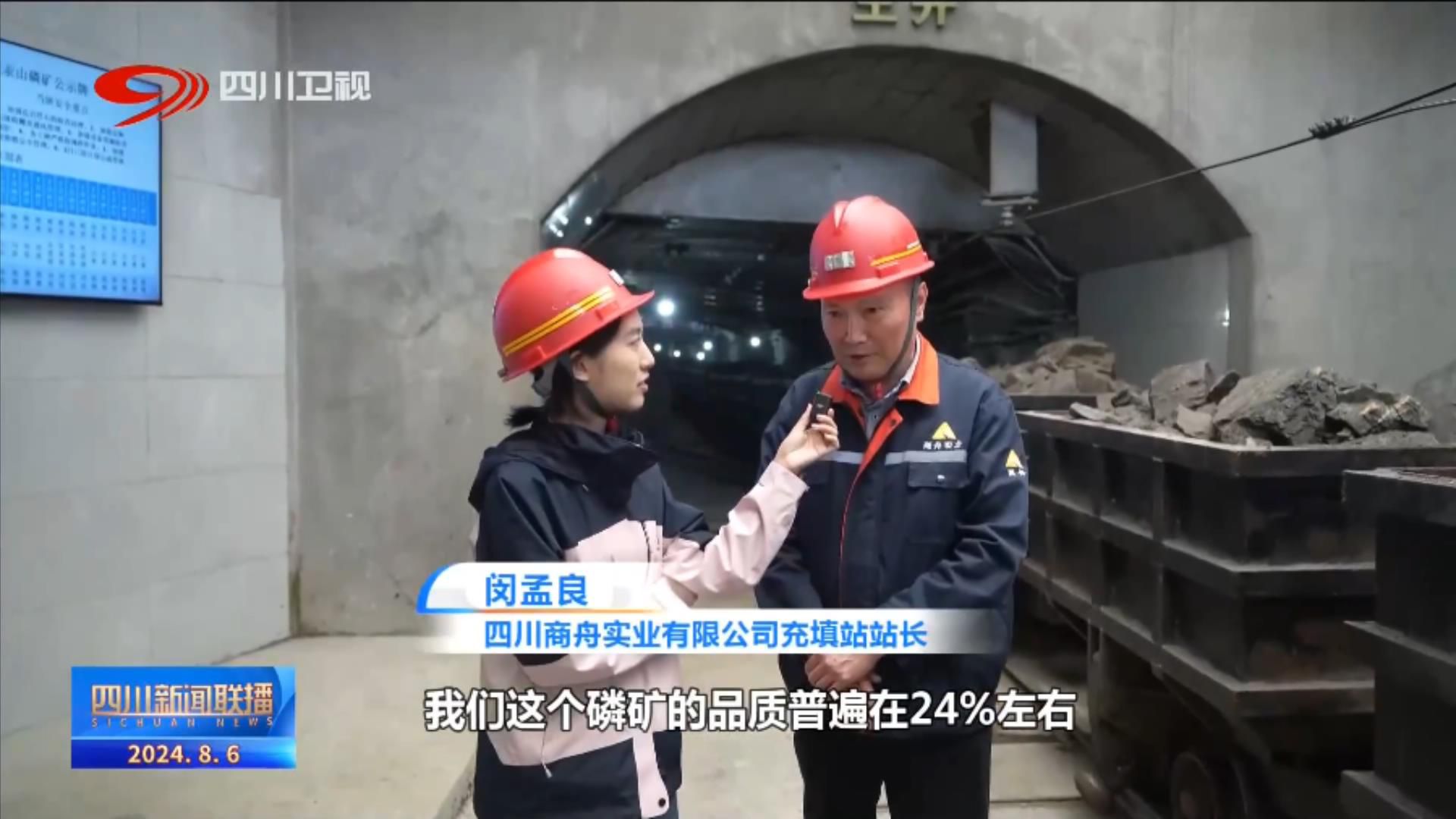 四川商舟实业有限公司充填站站长 闵孟良:这个就是磷矿石,就是这个黑颜色的。我们就是要提取这个黑颜色的五氧化二磷,其他的这种就是其他的一些成分。我们这个磷矿的品质普遍在24%左右,通过我们洗选之后,磷精矿的品质可以达到34%以上。