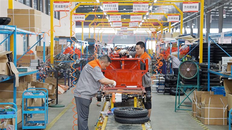 8月5日,位于四川省遂宁市安居经开区的四川凯希蜀宇摩托车有限责任公司(以下简称“凯希蜀宇”)生产车间,冲压、焊接、涂装、总装等各条生产线马力全开,每5分钟就有一辆电动三轮车下线。